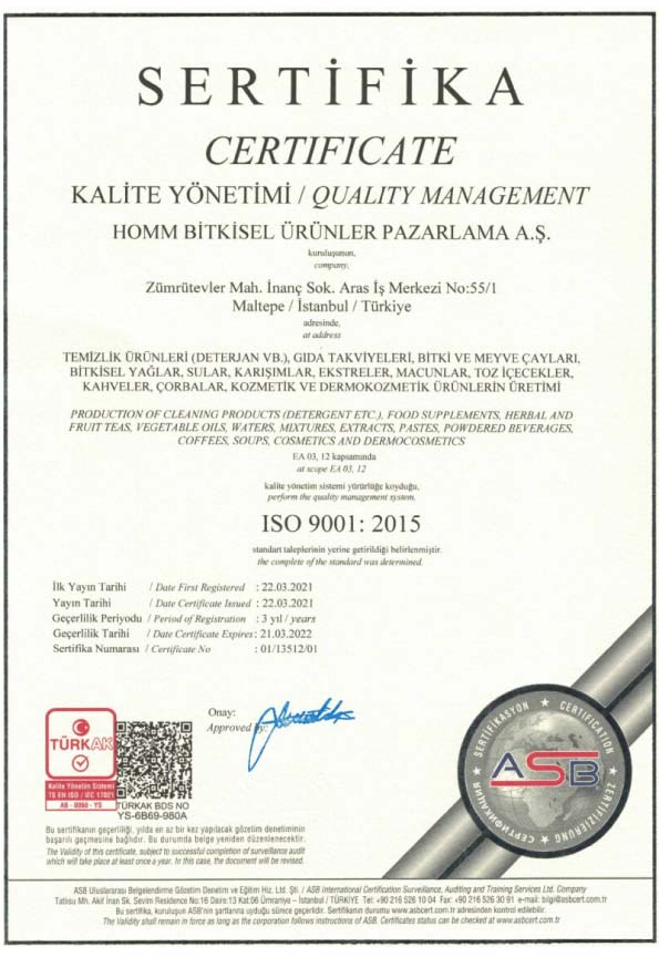Kullandığınız veya satışını yaptığınız ürünlere güvenin. Homm Bitkisel’de, A’dan Z’ye tüm üretim prosesleri ve satış kanallarında kalite, sağlık ve güven kriterleri en ön sırada yer almaktadır.
